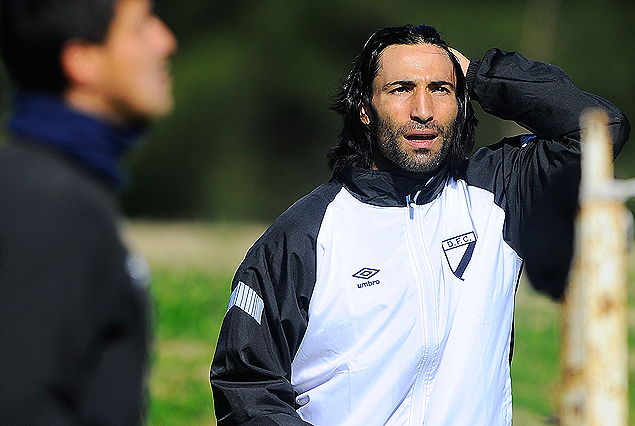 Ernesto "Tecla" Farías aparece por detrás de Fabián Canobbio. El delantero argentino, llegó y entrenó como muestra la imagen de Tenfield.com en el Complejo franjeado de la ruta 101.