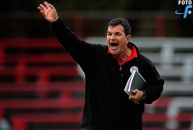 Jorge Giordano, entrenador, en pleno entrenamiento, marcando el camino del equipo.