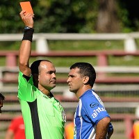 Rojas muestra la roja a Marcos Neves, porque sumó dos amarillas. Un partido al margen en Cerro Largo.
