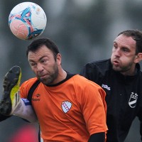Damián Malrrechaufe fue con todo sobre Horacio Peralta en el fútbol del jueves entre Danubio y el equipo de la Mutual.