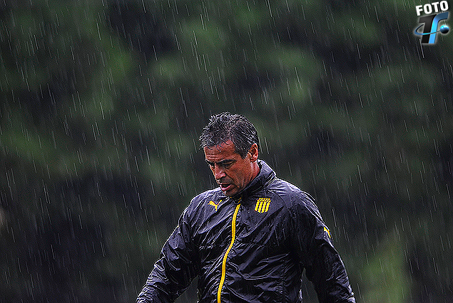 La imagen del día en Los Aromos se asoció a la de Pablo Bengoechea, el técnico de Peñarol, en el Torneo Clausura, atravesó el temporal y reflotó con el título de Campeón del Torneo Apertura. El jueves, en el penúltimo día de entrenamiento del año, el DT también se sumó a los jugadores en la cancha.