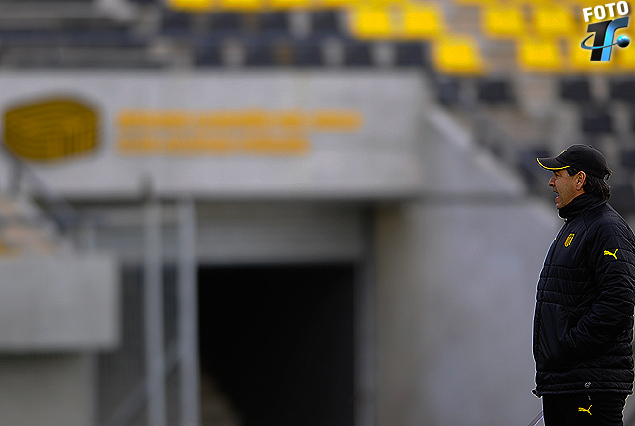 Jorge Da Silva, el técnico de Peñarol, en el Estadio Campeón del Siglo, con cambio a la vista en el ataque.