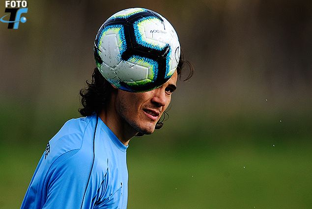 Edinson Cavani, el gran goleador, de cabeza a la ilusión en el Complejo Celeste.