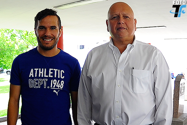 Alvaro González en la sede de Nacional junto al presidente Cr. José Luis Rodríguez, el presidente tricolor.
