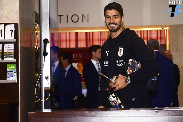 Luis Suárez el jueves el arribo al Hotel de Ekaterimbugo a un día del debut mundialista.