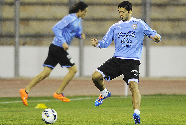 Edinson Cavani y Luis Suárez, las dos estrellas del ataque celeste. Toda la apuesta a la potencia de los goleadores celeste para ganar a Jordania.