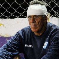 El equipier de Cerro, Héctor "Toto" Pereira, con un corte en la cabeza.