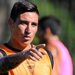 Angel Luna en el ataque de los buzones ante River Plate.