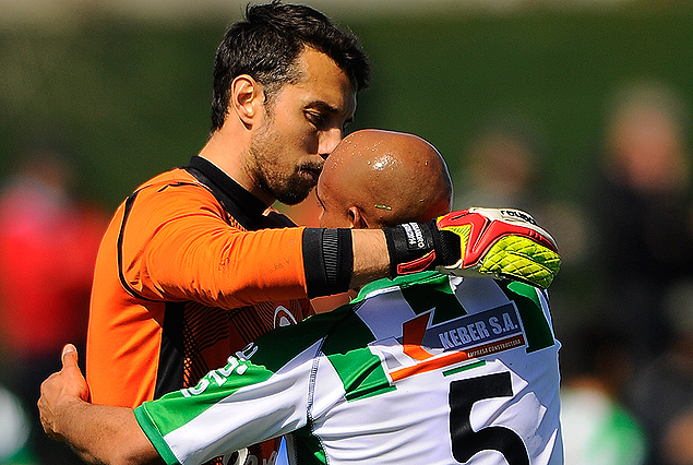 Abrazo: Fabián Carini y Carlos Díaz se abrazaron al terminar el encuentro. Vistieron juntos la celeste en dos mundiales juveniles sub-20 dirigidos por Víctor Púa, porque ambos repitieron: Malasia y Nigeria.