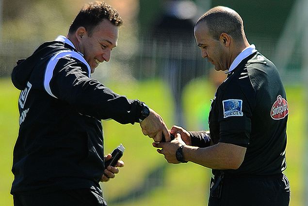 Spray: A los diez minutos de juego al juez Oscar Rojas tuvo problemas con la espuma para marcar dónde debe ir la pelota en cada tiro libre y fue auxiliado por Gustavo Siegler.
