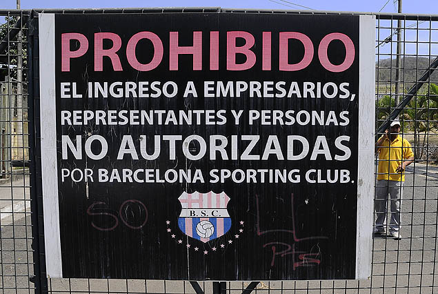 A las 10.23 horas de esta mañana de miércoles, hora de Ecuador, el ómnibus de la delegación de Uruguay con las motos de los policías locales abriendo la marcha con sus sirenas, llegó hasta el enorme portón de acceso al Estadio del club Barcelona, del cual cuelga un también grande letrero con una curiosa y llamativa leyenda: “Prohibido el ingreso a empresarios, representantes o personas no autorizadas por Barcelona Sporting Club”. Contundente.