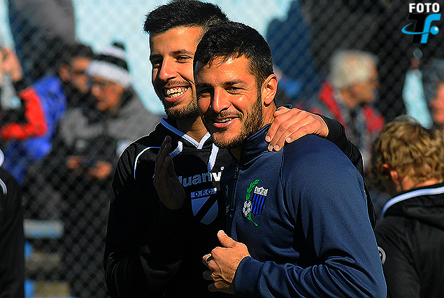 Abrazo… Martín Rivas y Pablo Ceppelini, en el abrazo del reencuentro. El defensor negriazul y el volante franjeado se volvieron a encontrar en una cancha y saldaron el encuentro con un afectuoso abrazo. Supieron ser compañeros en filas de Wanderers.