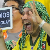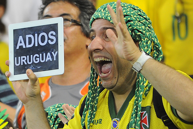 “Adiós Uruguay”, dice en el pizarrón que porta un eufórico “torcedor” norteño. En Brasil respiran aliviados con la eliminación de Uruguay.
