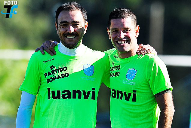Alvaro Recoba y Antonio Pacheco en el encuentro soñado de "Pelota al Medio a la Esperanza".