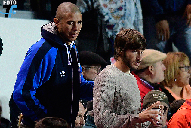 Diego Arismendi junto a Matías Viña en la tribuna.