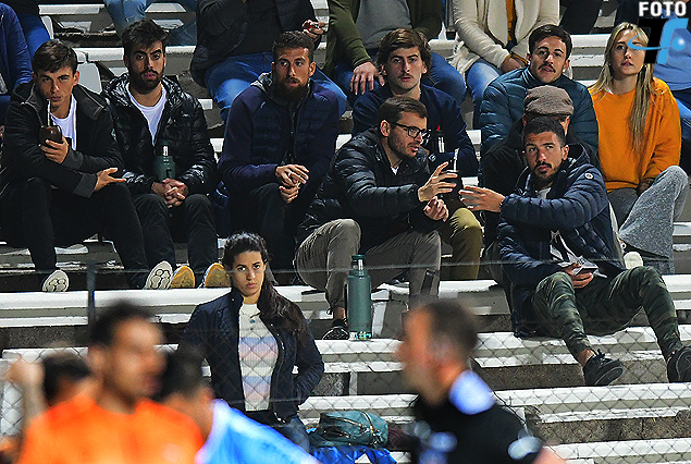 Axel Müller, Guzmán Corujo, Gabriel Neves y Gonzalo Camargo en la tribuna principal del Parque Viera.