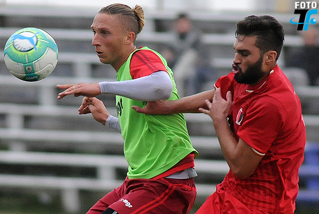 El suizo argentino Kevin Gissi se lleva la pelota en el amistoso ante Basáñez.
