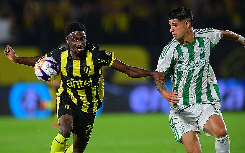 Primera mitad de igual a igual. Mejor arranque de la visita, con el despliegue de Felipe Cairus, que no supo aprovechar por la falta de definición de Sebastián Da Silva. Inconsistente por demás la zaga central y el bajísimo nivel el mediocampo local, repercutió en el funcionamiento del equipo, que se valió solamente de la velocidad del colombiano Angulo para generar acciones de peligro. Y llegó la hora de la polémica, con el posible penal cometido por Guillermo Cotugno en perjuicio de Gastón Togni. Pareció engancharlo y derribarlo dentro del área, pero tanto el árbitro Hernán Heras, como los responsables del VAR, desestimaron los airados reclamos de los aurinegros.