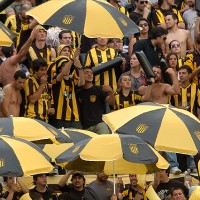 PEÑAROL: Cuatro minutos después arribaron el plantel y cuerpo técnico de Peñarol. La euforia de la gente, en la Tribuna Amsterdam, rápidamente también brotó en el ánimo previo. La característica común, de los dos lados, pasó por el mate y la música.
