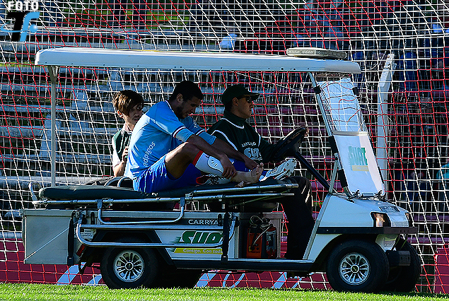 Diego Arismendi ya sin media en el tobillo derecho es trasladado en el móvil de Suat.