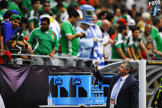 Wilmar Valdez teléfono en mano en la cancha del estadio.
