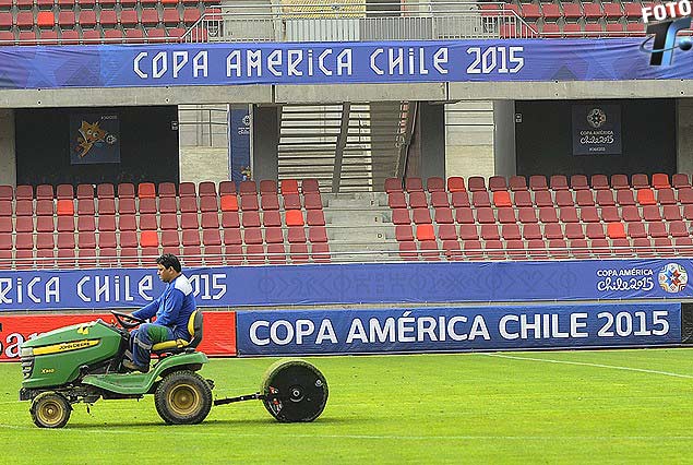 El verde césped aflora en el trabajo de los encargados de mantener la cancha en el Estadio que vive el clima de la Copa América.
