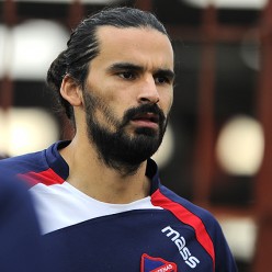 Michel Acosta en la línea de volantes de Atenas.