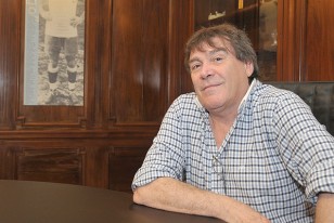 El Presidente de Atlético Rafaela, Dr. Ricardo Tettamanti firma el acuerdo acompañado del Gerente de Fútbol, Horacio Bongiovanni.