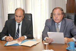 El Dr. Ricardo Tettamanti firma el acuerdo en compañía del Gerente de Fútbol del club, Horacio Bongiovanni.