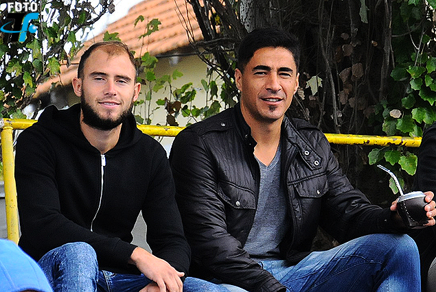 BEATO Y FERNANDEZ: Los jugadores de Villa Teresa, Gerónimo Beato (hijo del ex DT de Villa Teresa Vito Beato) y Antonio Fernández, en recuperación, siguieron el juego desde la tribuna, como dos hinchas más.