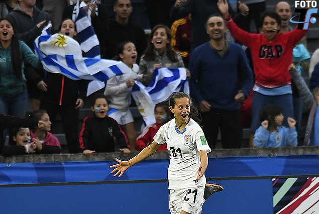Belén Aquino en el emocionado festejó del gol uruguayo.