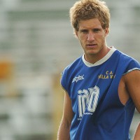 Federico Laens, goleador del "papal", al ataque en el partido del domingo.