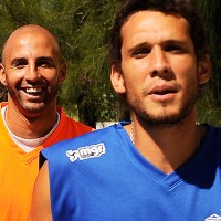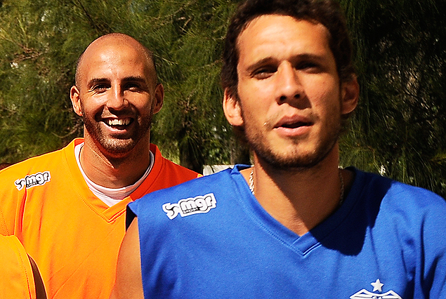 Álvaro Peña, con chances de titularidad. Detrás, el zaguero Gastón Pagano, seguro desde el vamos.