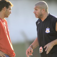 El volante Jesús Belase y el técnico Julio Ribas en la intensidad del trabajo.
