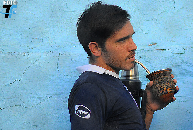 Matías Zunino no jugó y siguió a sus compañeros tomando mate en la Tribuna.