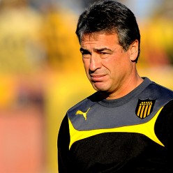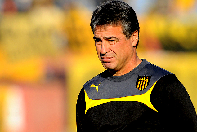 Pablo Bengoechea, el técnico de Peñarol, en la hora del triunfo y un paso de ganar el Torneo Clausura.
