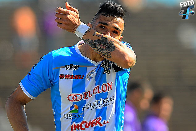 Joaquín Boghossian y el beso del festejo en el primer gol.