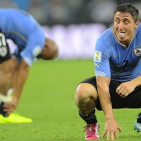 Egidio Arévalo Ríos y "Cebolla" Rodríguez con la tristeza pintada en sus rostros. Se terminó el mundial para Uruguay.