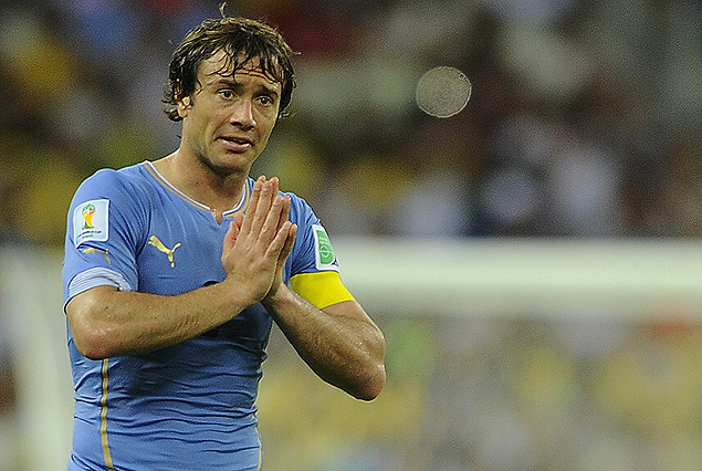 Diego Lugano junta sus manos en señal de impotencia. El capitán no lo puede creer, es puro lamento y decepción al finalizar el partido con la inesperada derrota celeste.