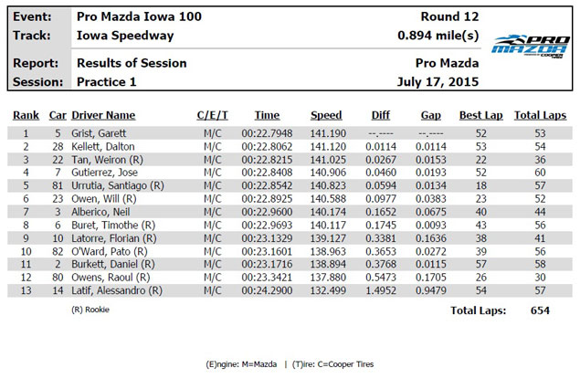 Buen arranque de Santiago Urrutia en la jornada de entrenamientos Libres llevada a cabo este viernes en el autódromo oval de Iowa en el marco de la 7a. Fecha del Campeonato estadounidense de la categoría Pro Mazda en la que el piloto compatriota lidera el certamen con 30 puntos de ventaja conduciendo el monoplaza del equipo Pelfrey.