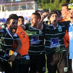 Juan Pablo Rodríguez, Diego Zabala, Gonzalo Aguilar y Jorge Contreras en gran festejo al final del partido.