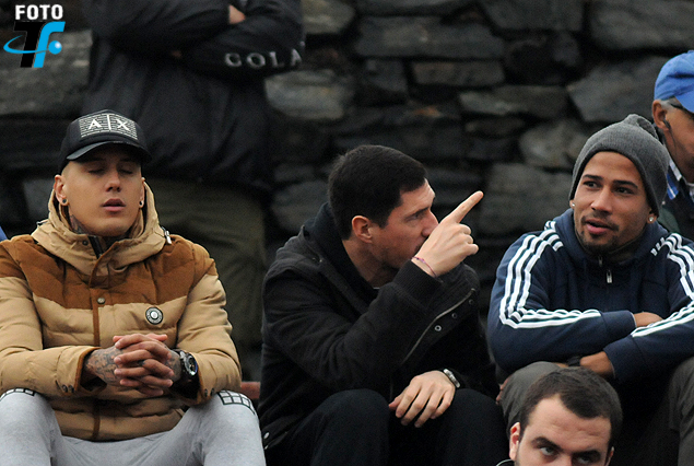 EN LA TRIBUNA: Jonathan Candia, Gonzalo Freitas y Martín Díaz, los tres jugadores de Liverpool, siguieron al equipo desde la Tribuna de Capurro.