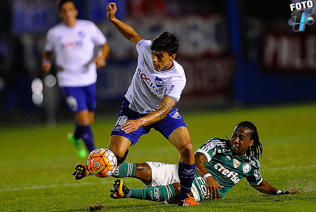 Felipe Carballo avanza con el balón dejando por el piso al brasileño Arouca.