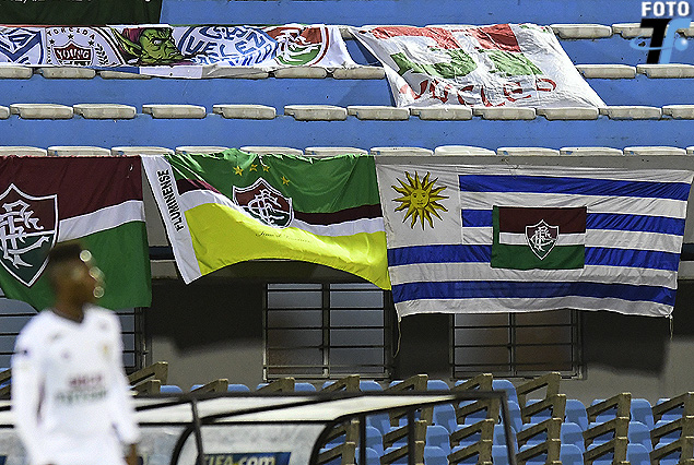 El pabellón patrio uruguayo con la enseña de Fluminense adherida en la zona central, apareció colgado del balcón de la tribuna América. “Orgulloso de los jugadores”, afirmó Alejandro Bertoldi.