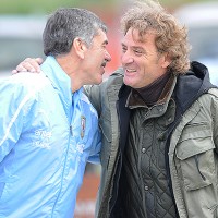 El profesor José Herrera y Daniel Carreño, reencuentro de amigos en el complejo.