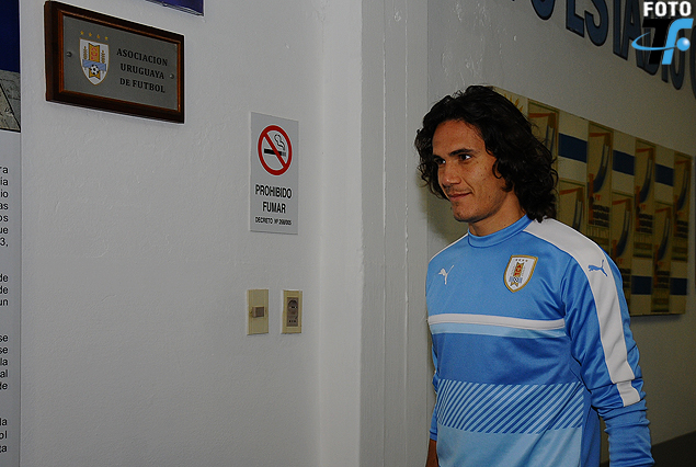 Edinson Cavani camino al vestuario locatario.