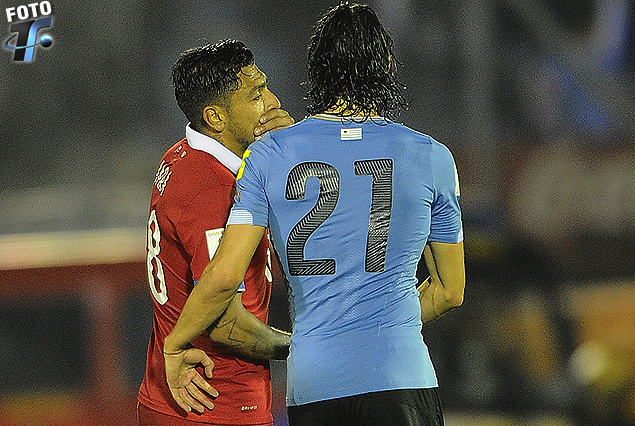Gonzalo Jara y Edinson Cavani, se saludaron al término del partido.