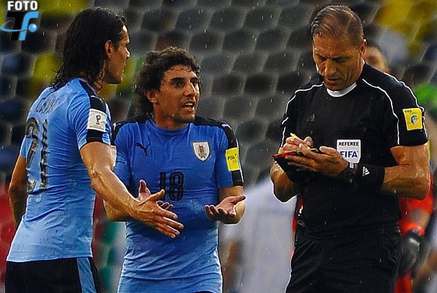 Pitana le saca la tarjeta amarilla a Cavani. No juega ante Ecuador.