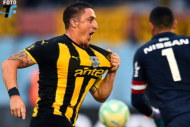 Cristian Rodríguez en el festejo del segundo gol de Peñarol, de penal, que le dio el gran triunfo y el título.