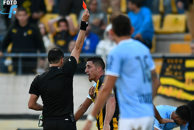 BRONCA: Cristian “Cebolla” Rodríguez fue expulsado en el cierre del partido. La decisión del árbitro Esteban Ostojich generó polémica. El capitán de Peñarol camino al vestuario no disimuló su enojo.